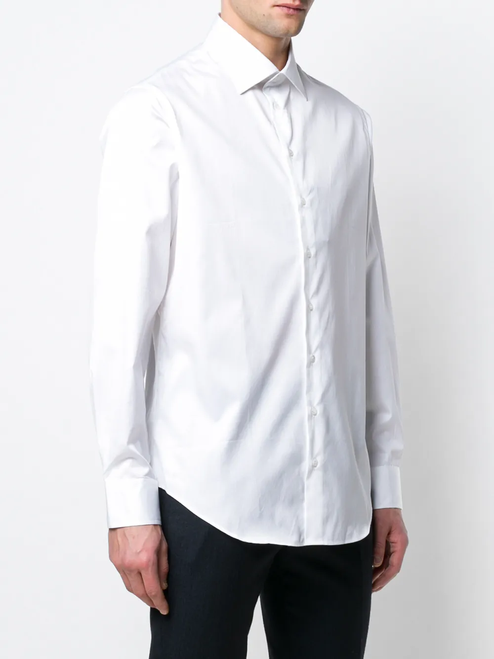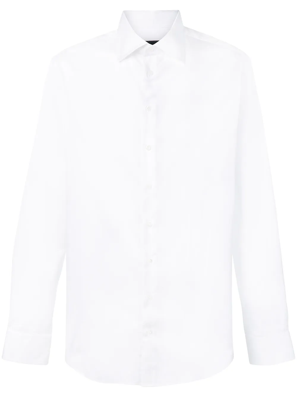 Hemd mit Eton-Kragen aus Baumwolle von Giorgio Armani. Merkmale: Eton-Kragen, Knopfverschluss vorne, lange Ärmel und abgerundeter Saum.