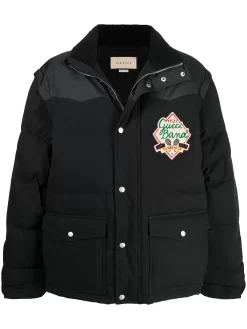 Stehkragen, Knopf- und Reißverschluss vorne, Vordertaschen mit Klappe, lange Ärmel, gerader Saum, Logo-Stickerei an der Brust. Farbe: Schwarz.