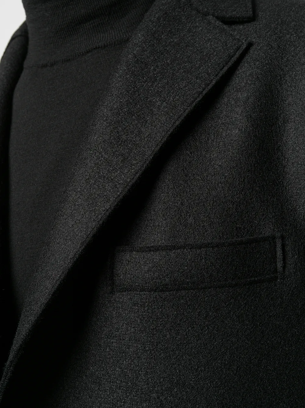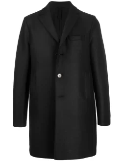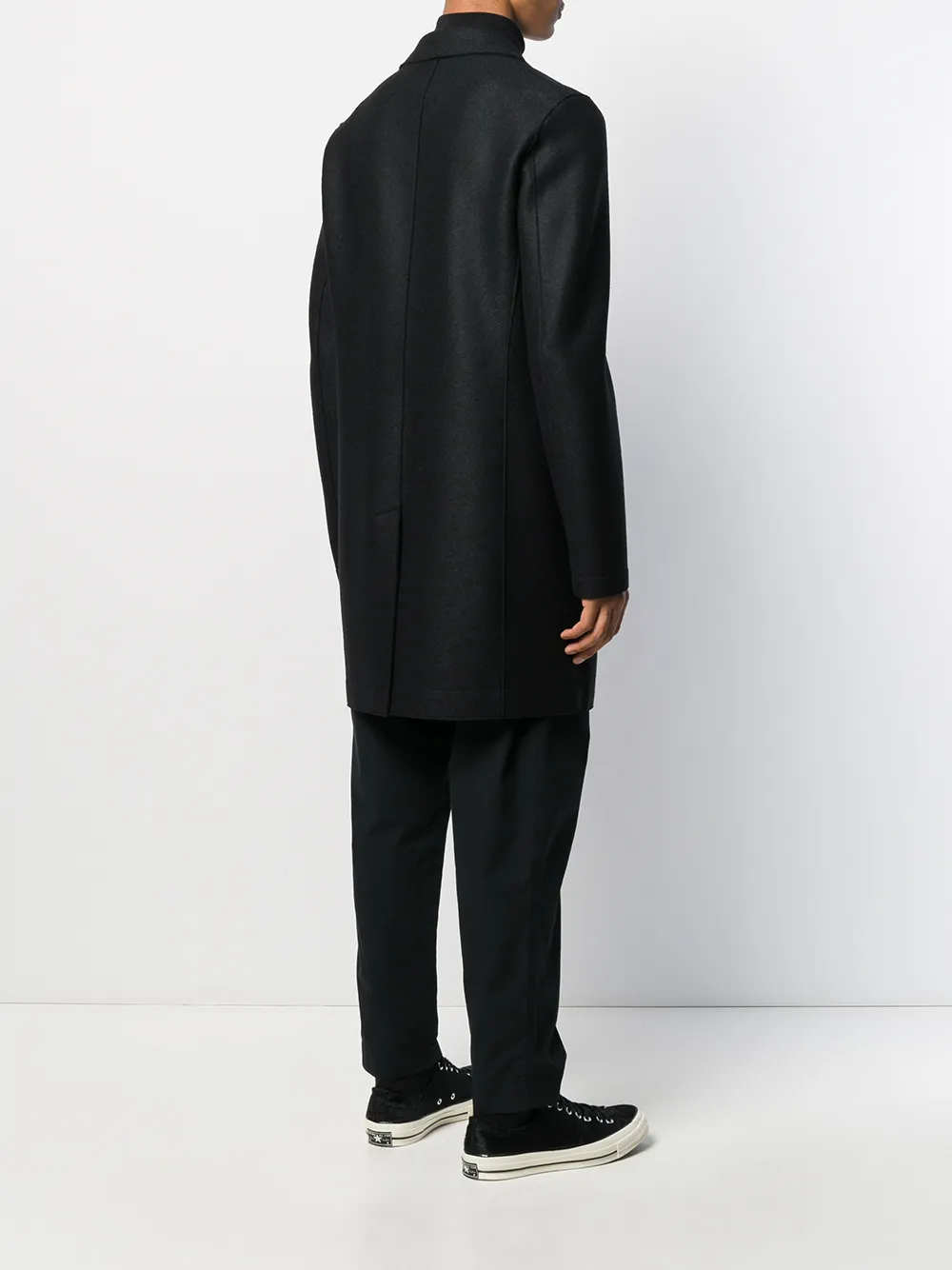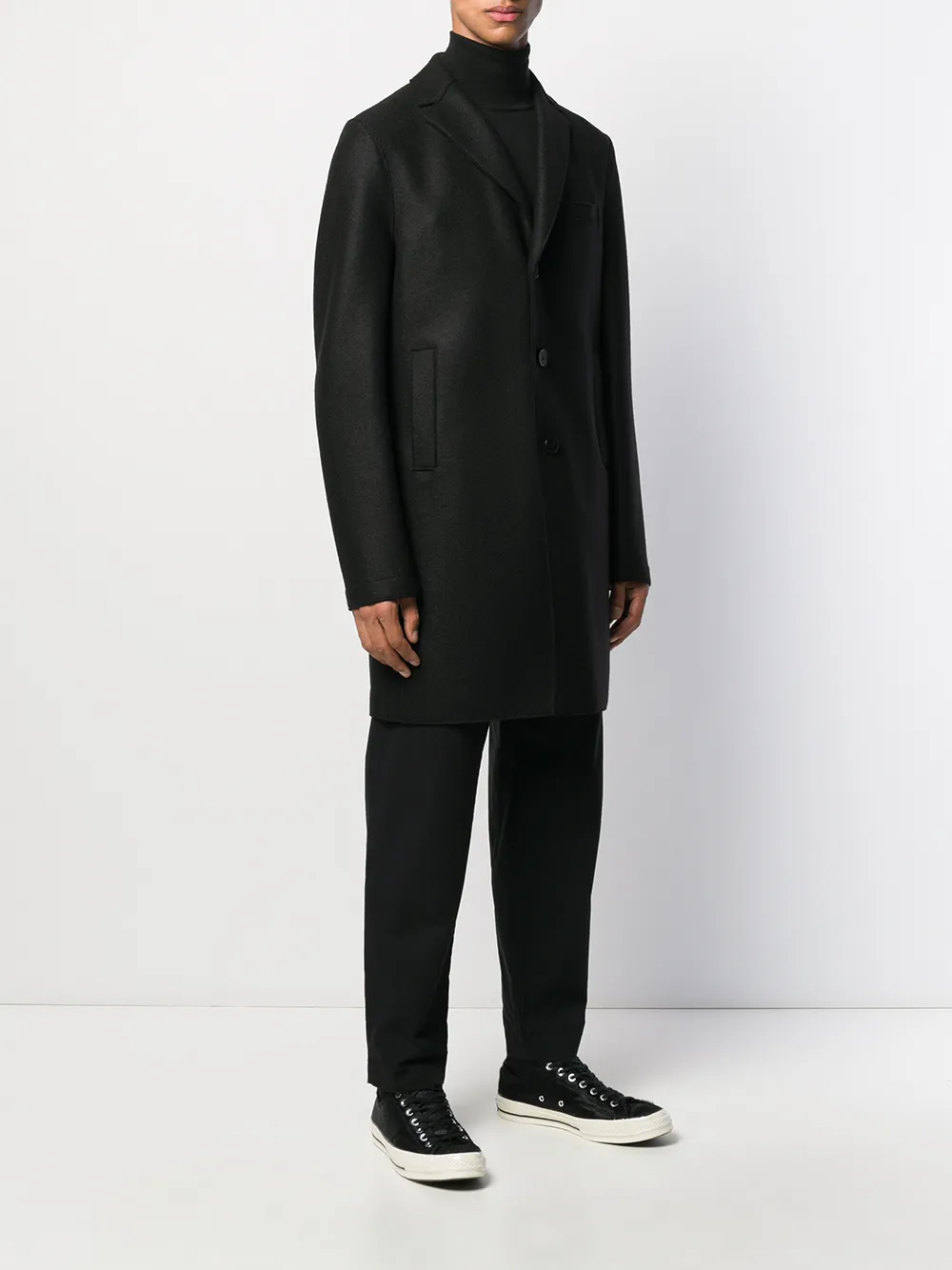 Einreihiger Mantel aus Schurwolle von Harris Wharf London. Merkmale: fallendes Revers, Knopfverschluss vorne, Einstecktuch, seitliche Taschen, lange Ärmel und zentrierter Schlitz hinten.