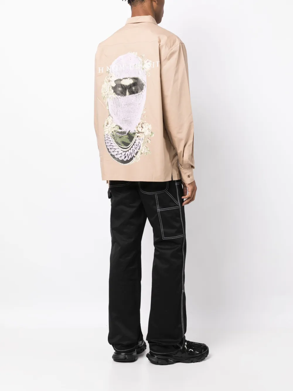 Pfirsichrosa, Baumwolle, Logo-Print hinten, Illustration-Print, klassischer Kragen, Knopfverschluss vorne, klassische Ärmel, zwei aufgesetzte Brusttaschen, gerader Saum.