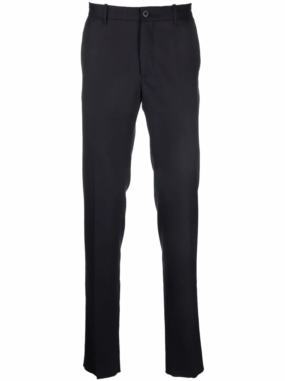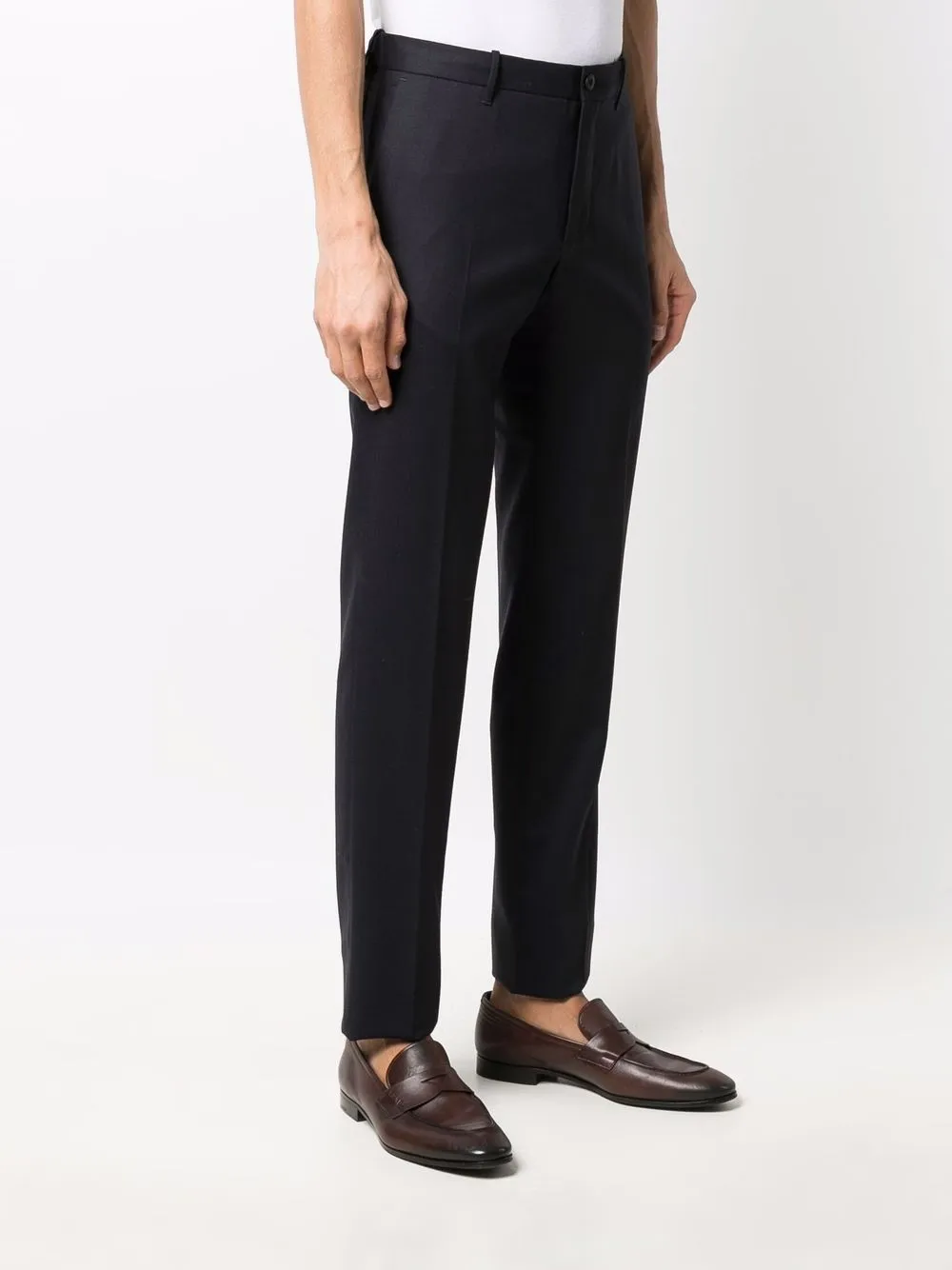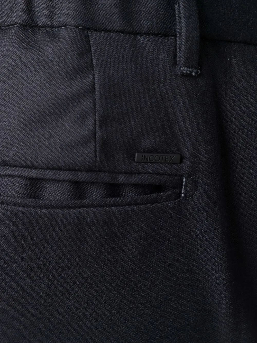 Gürtelschlaufen, Knopf- und Reißverschluss vorne, zwei seitliche Eingrifftaschen, zwei eingefasste Gesäßtaschen, schmaler Schnitt, Cropped-Design.