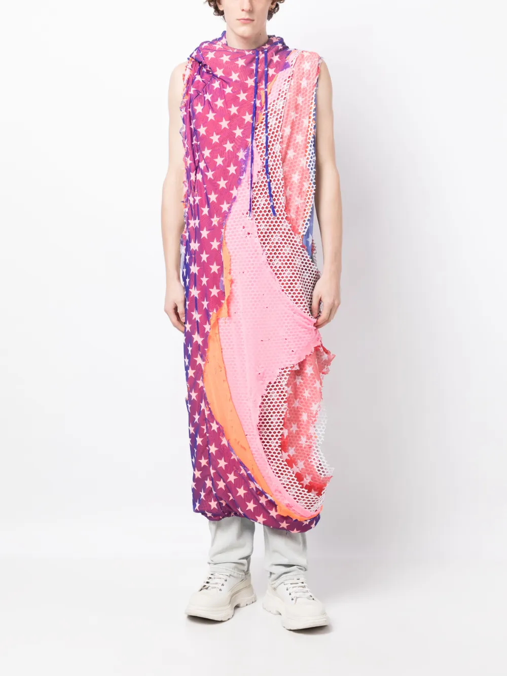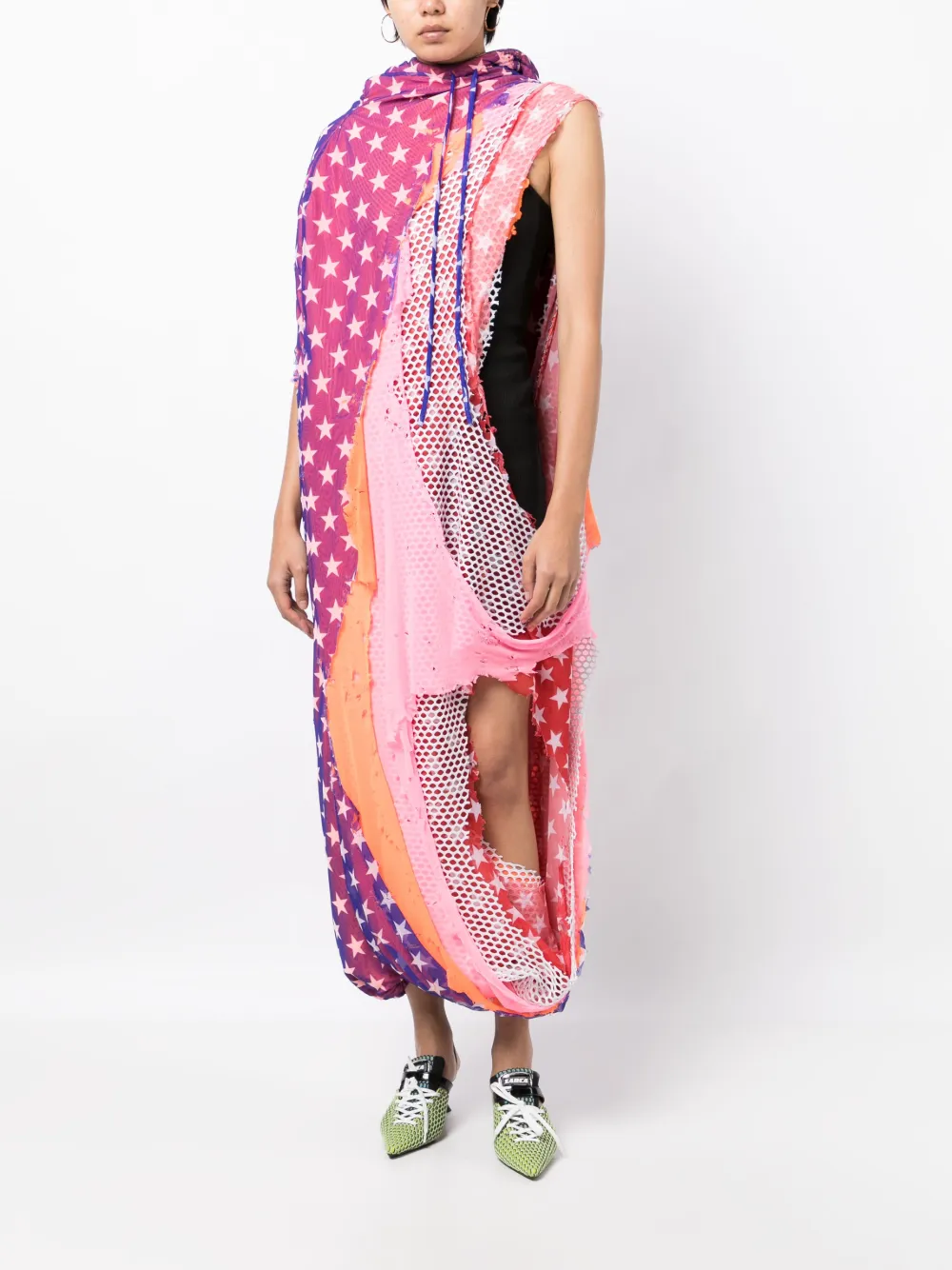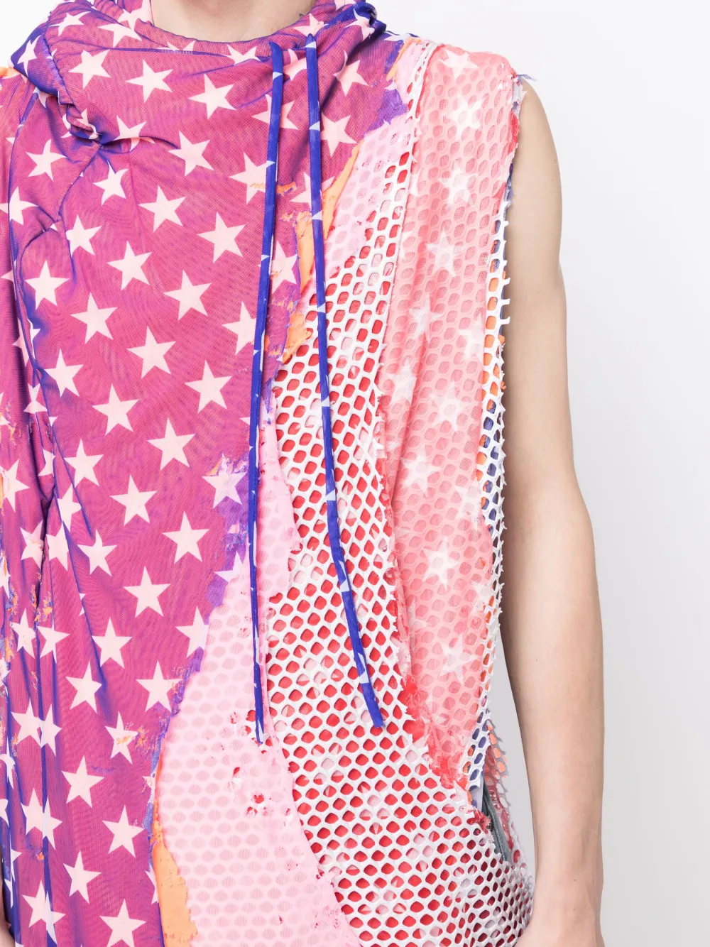 Mehrfarbig, Mesh-Einsätze, gerippte Details, Stern-Print, Kapuze mit Kordelzug, ärmellos, gerader Saum.