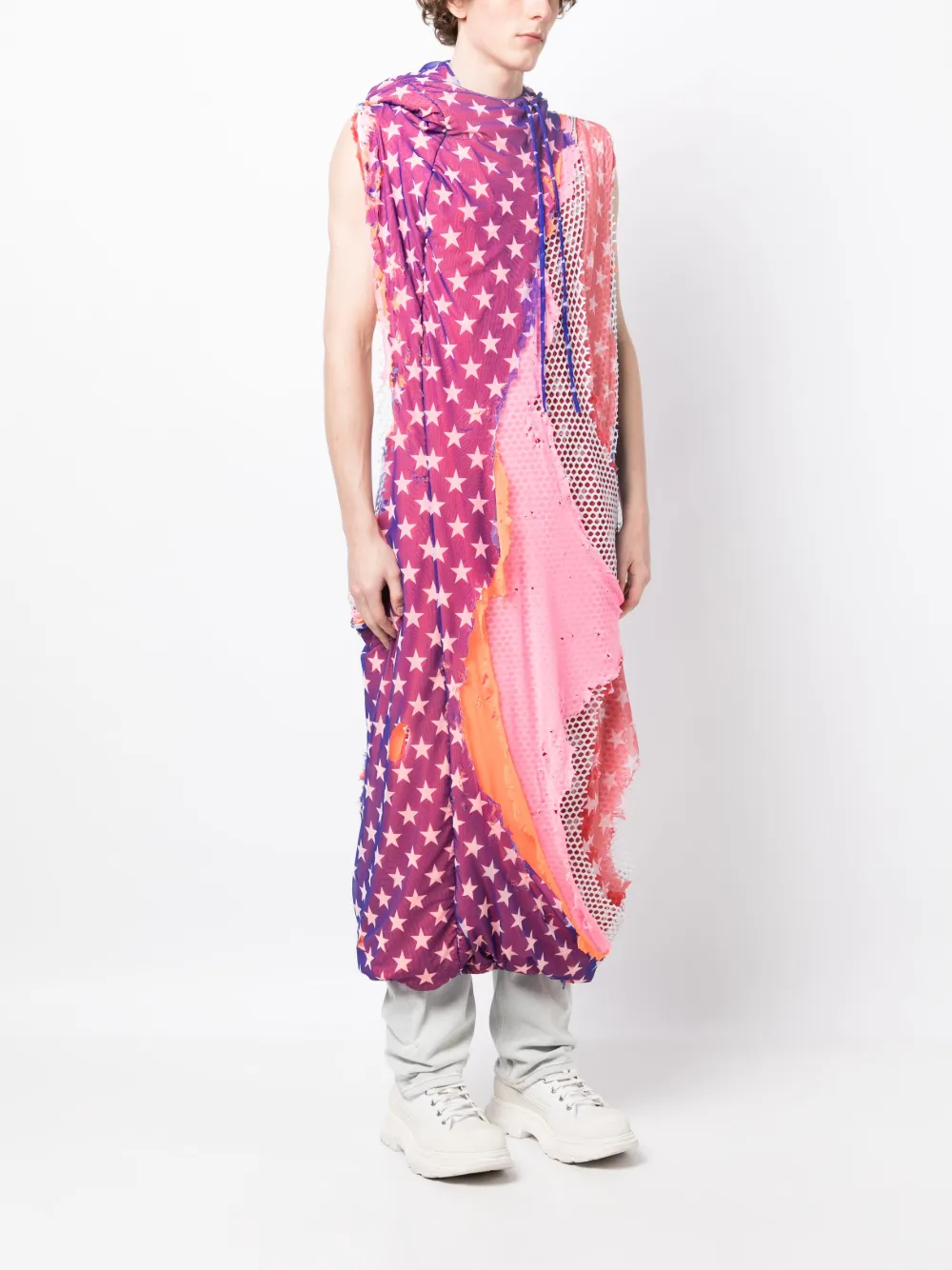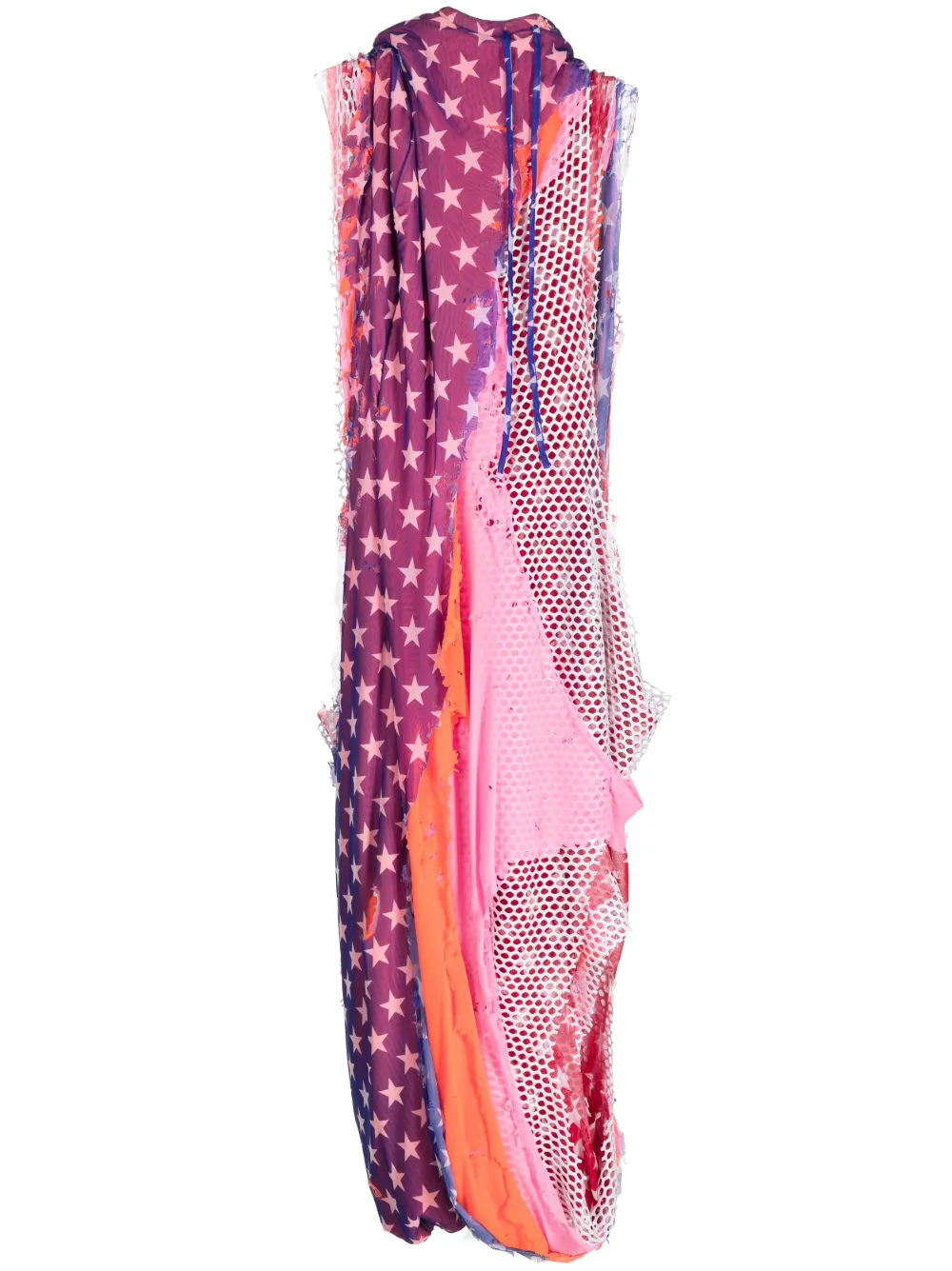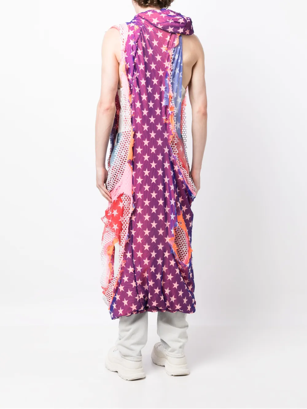Mehrfarbig, Mesh-Einsätze, gerippte Details, Stern-Print, Kapuze mit Kordelzug, ärmellos, gerader Saum.