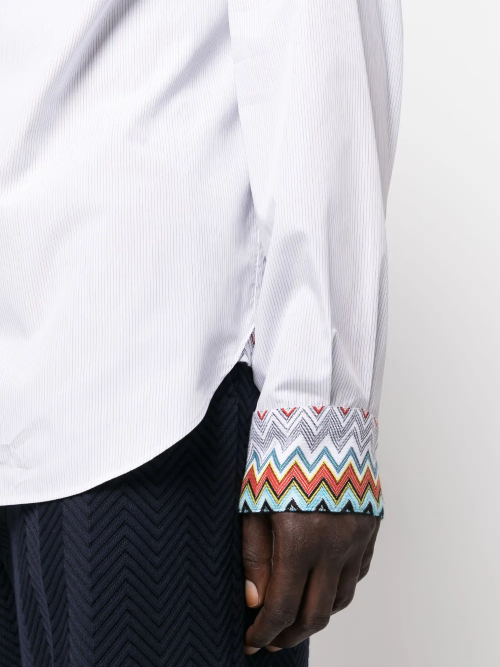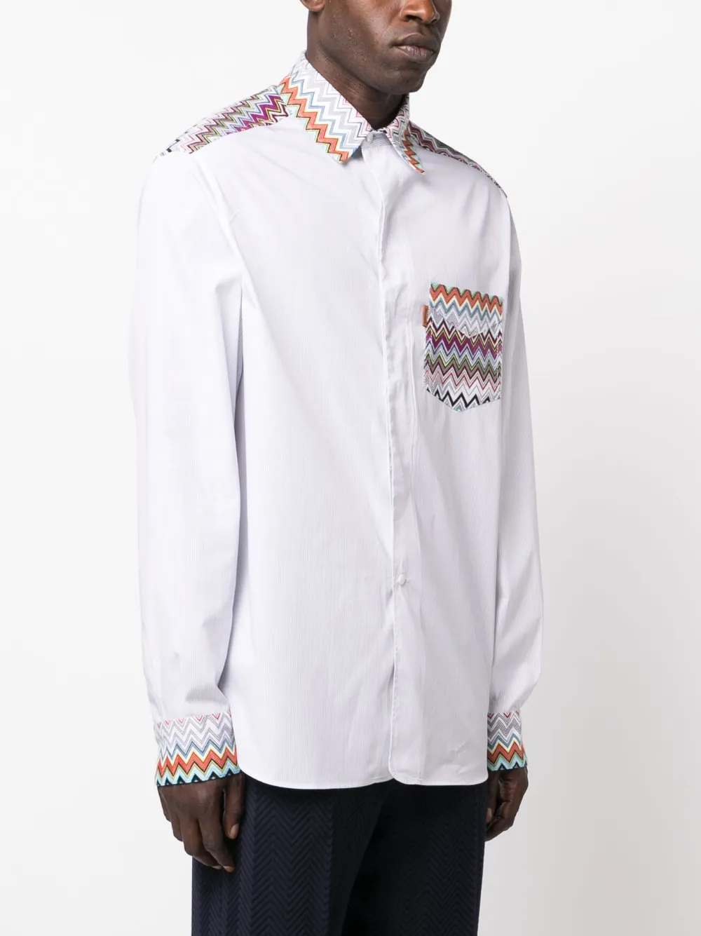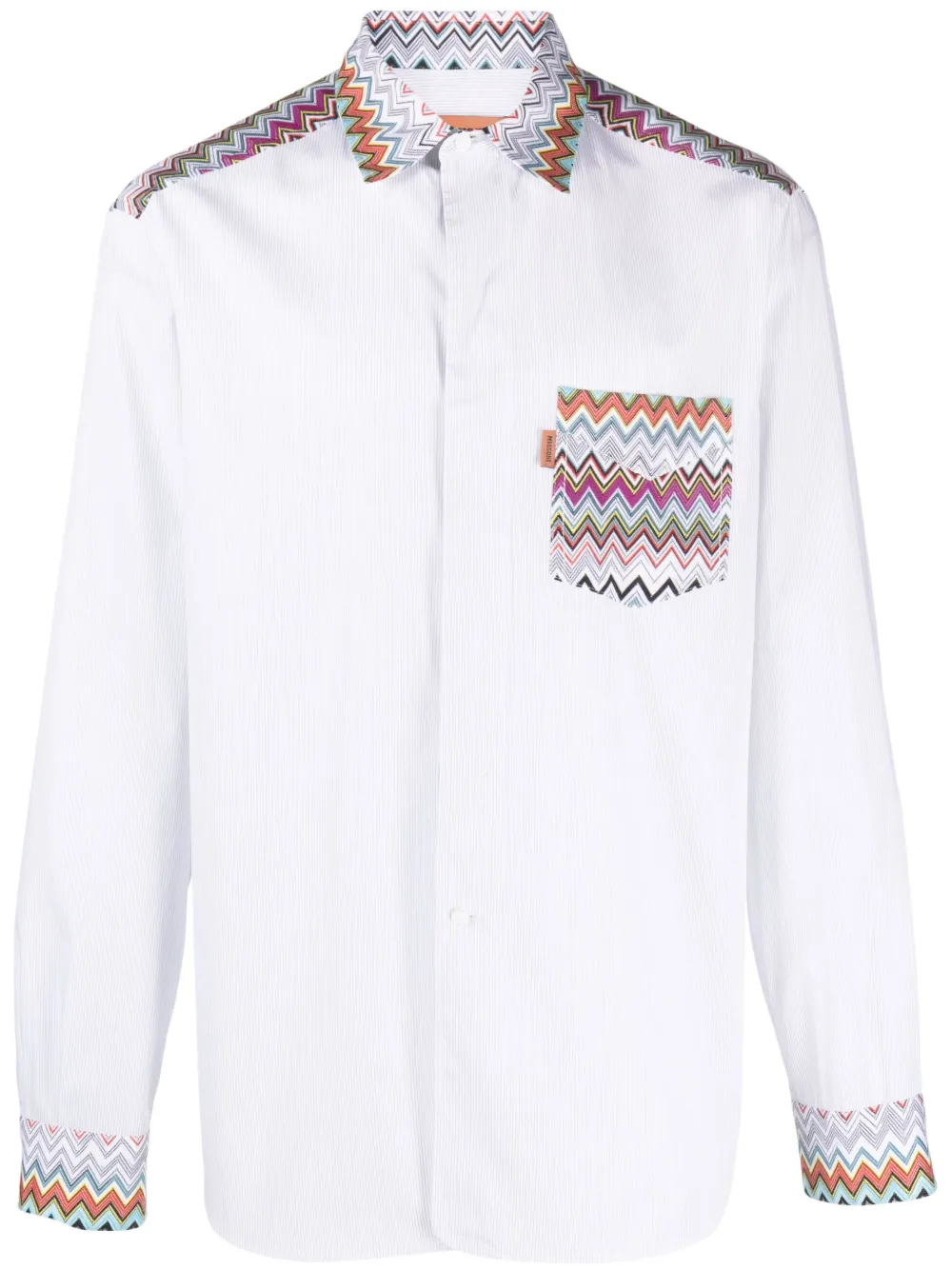 Weiß, Mehrfarbig, Baumwolle, aufgedruckte Längsstreifen, Zickzack-Print, klassischer Kragen, Knopfverschluss vorne, aufgesetzte Brusttasche, lange Ärmel, abgerundeter Saum. Alle Pieces von Missoni sind echte Handwerkskunst und können daher leicht vom Foto abweichen.