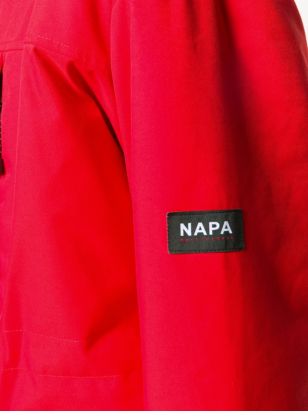 Gefütterte Sportjacke von Napa By Martine Rose. Merkmale: Stehkragen, Druckknopf- und Reißverschluss, Kapuze mit Kordelzug, lange Ärmel, Brusttaschen mit Reißverschluss, Manschetten mit Schnallen, Vordertaschen mit Klappe, gesteppte Innenseite und gerader Schnitt.