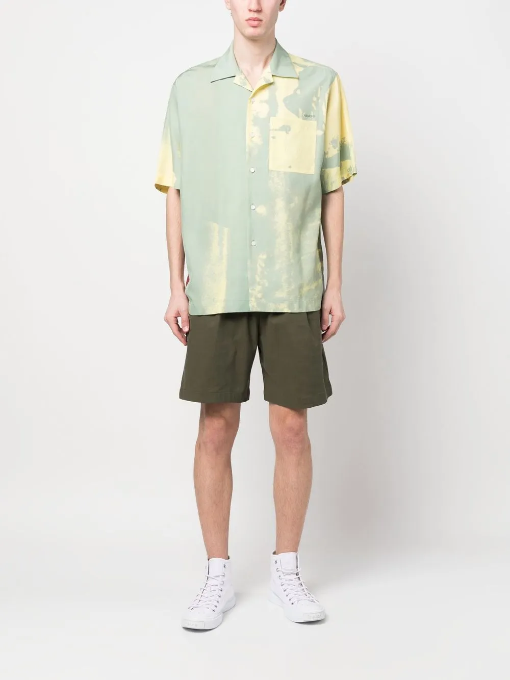 Grafischer Print, Logo-Print an der Brust, aufgesetzte Brusttasche, Spreizkragen, Knopfverschluss vorne, kurze Ärmel, gerader Saum.