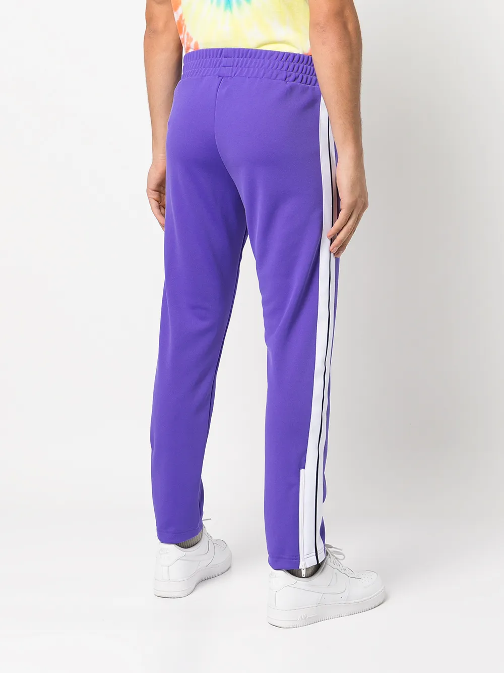 Inspiriert von sportlicher Streetwear, präsentiert Palm Angels diese lebendige lila Jogginghose in lässiger Silhouette. Abgerundet durch das seitliche Logo, wird das Paar durch die athletischen Seitenstreifen akzentuiert.