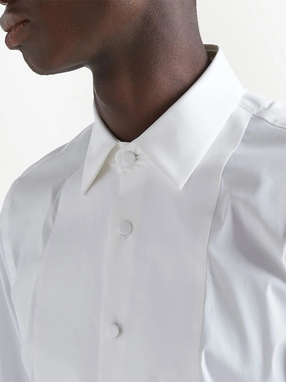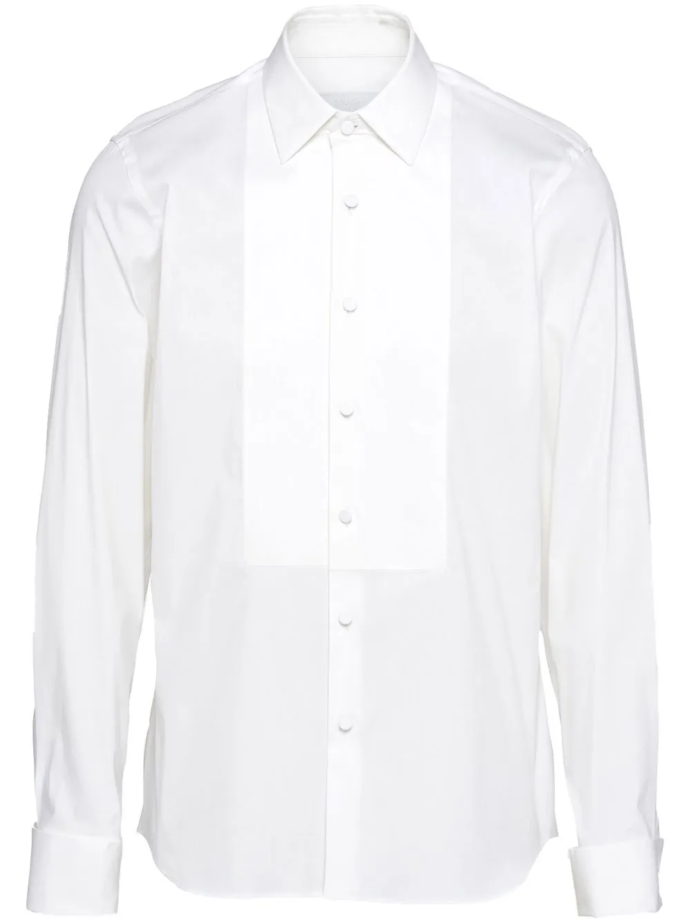 Weiß, Baumwolle, Knopfverschluss vorne, lange Ärmel, Knopfmanschetten, abgerundeter Saum.