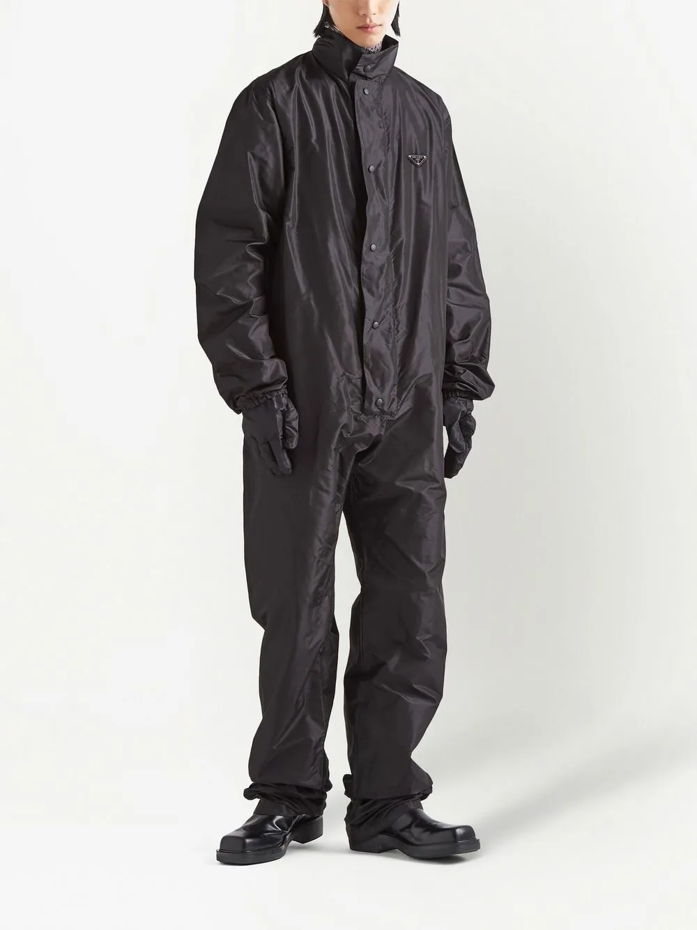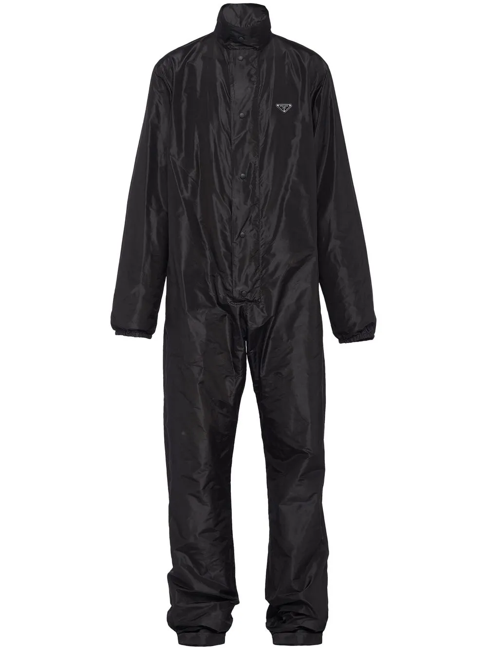 Schwarz, recyceltes Polyamid, Triangel-Logo aus Emaille, Stehkragen, Druckknopfverschluss vorne, lange Ärmel, gerades Bein. BEWUSSTER SHOPPEN: Dieses Piece ist gut für den Style − und besser für die Umwelt. Es besteht aus recycelten oder upcycelten Materialien, die bei der Produktion weniger Energie und Wasser verbrauchen und somit eine geeignete Alternative zu neuen Rohmaterialien sind. Beim Waschen von synthetischen Materialien werden Mikroplastikfasern abgesondert, die in das Wasser gelangen. Wir empfehlen die Nutzung eines Waschbeutels, der die Kunstfasern auffängt.