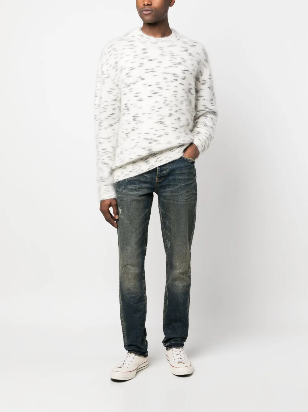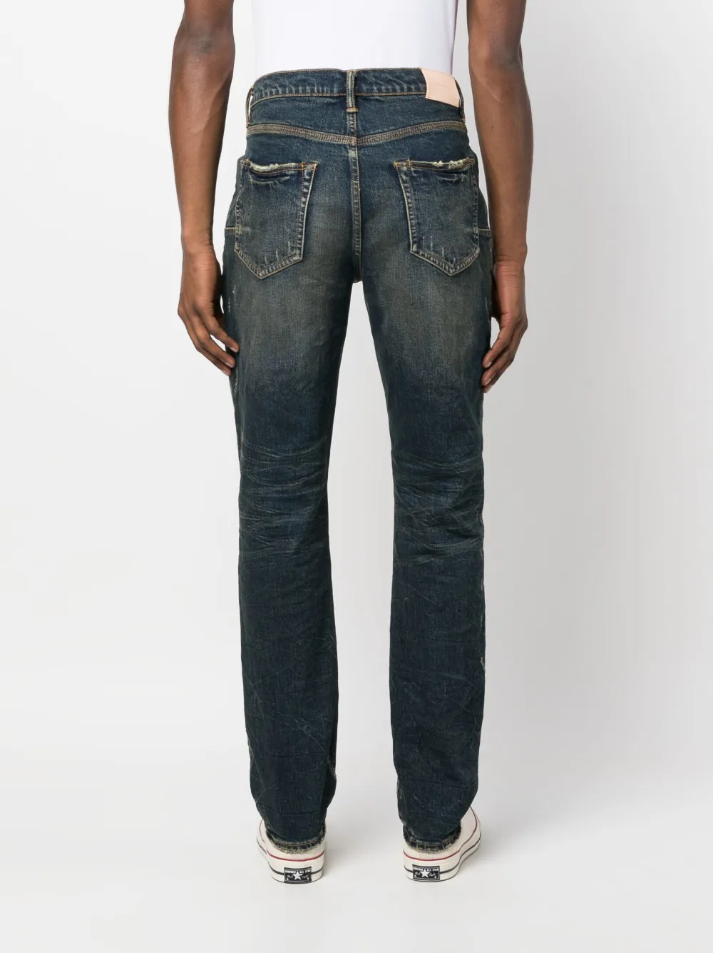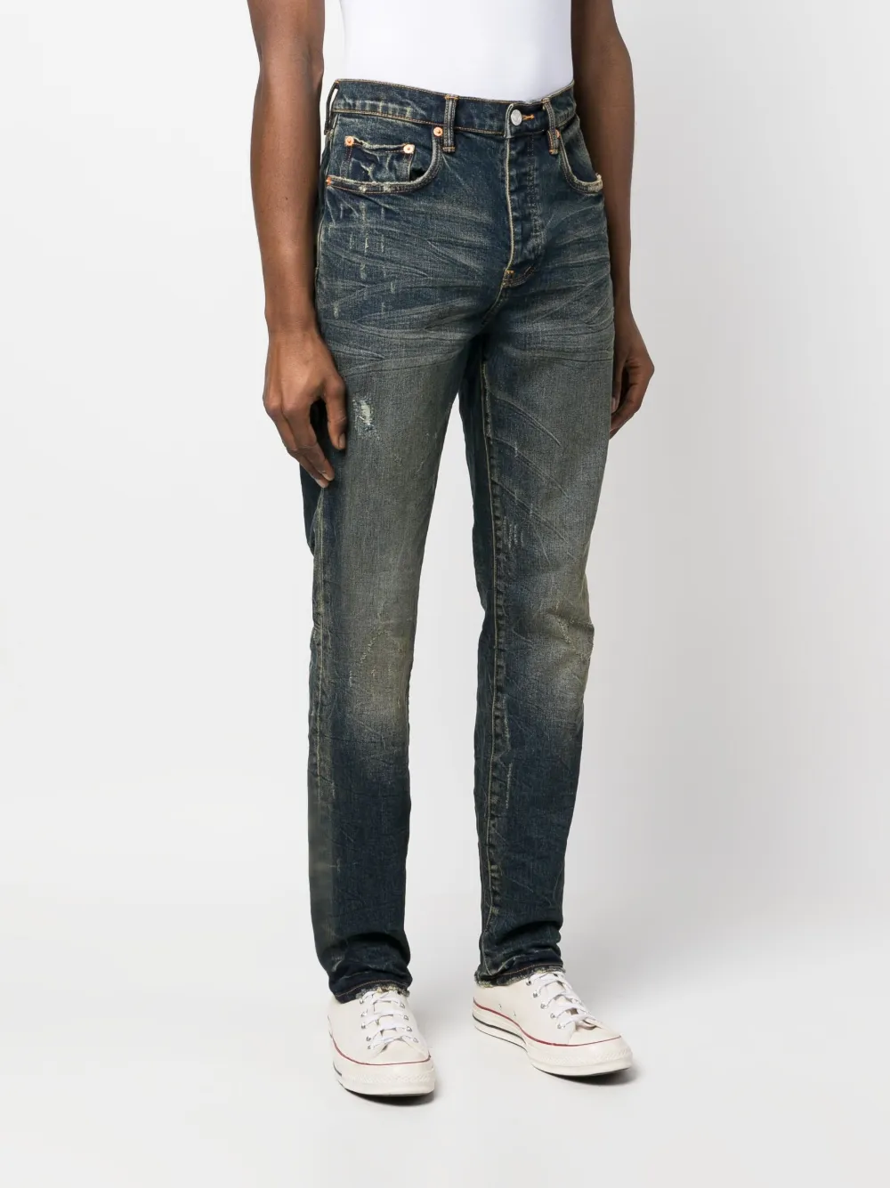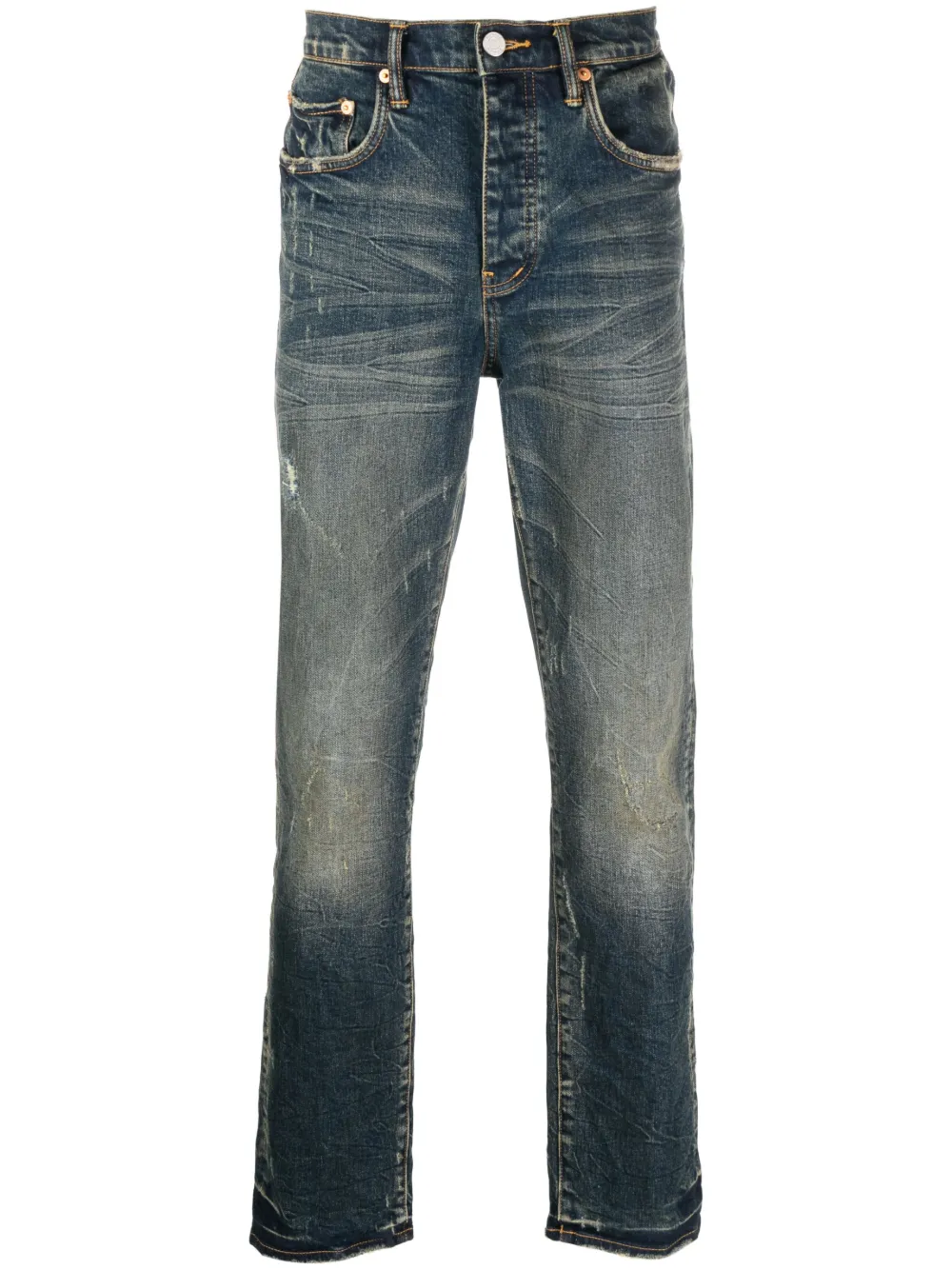 Marineblau, Mehrfarbig, ausgeblichener Effekt, gerades Bein, Logo-Patch hinten, Gürtelschlaufen, Knopf- und Reißverschluss vorne, Five-Pocket-Design.