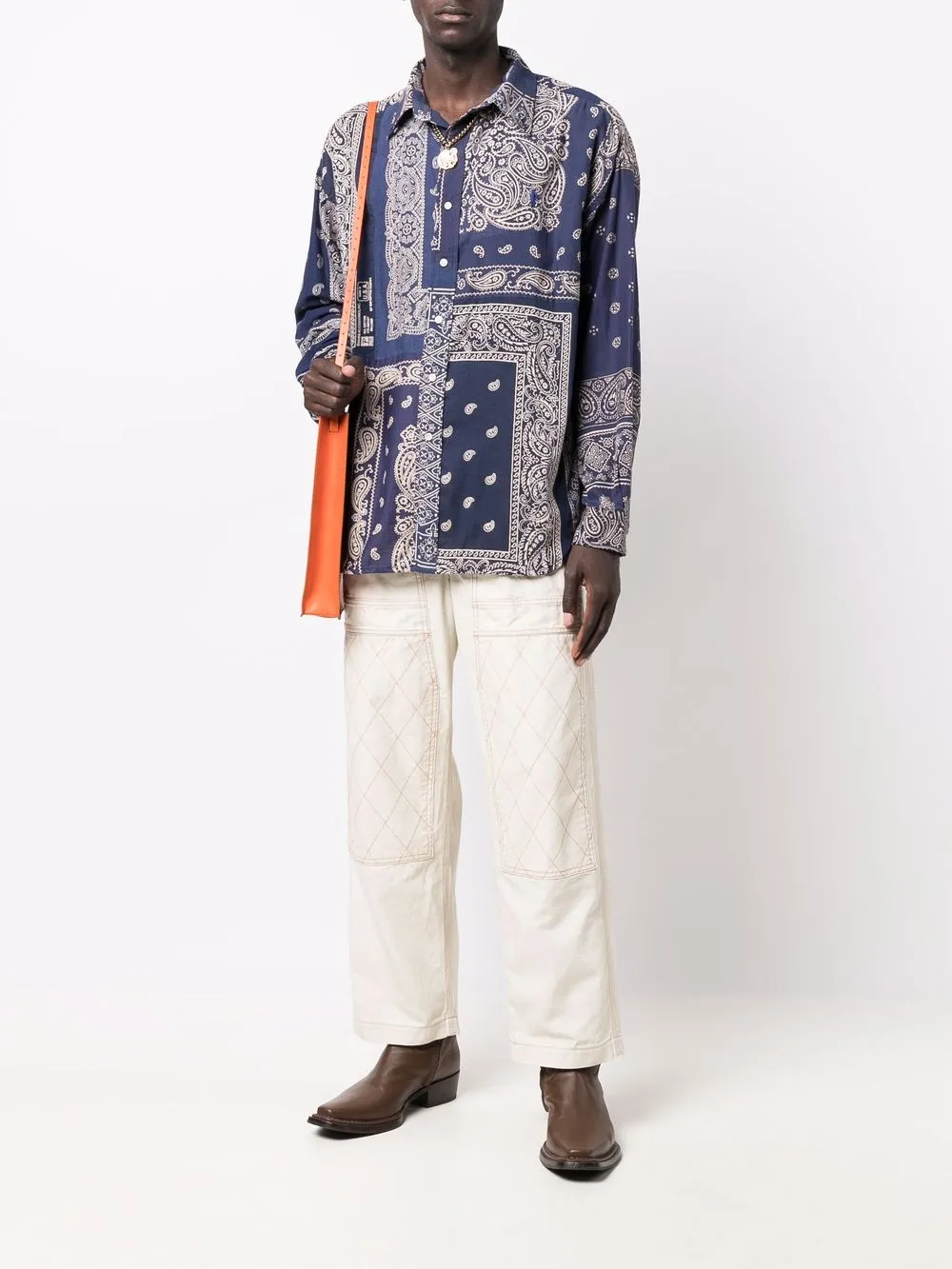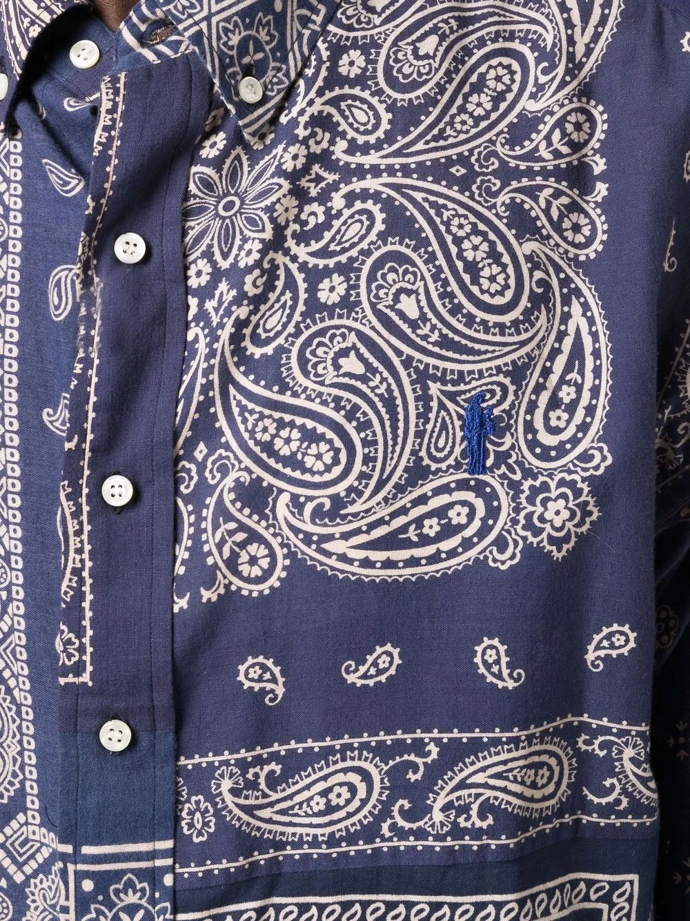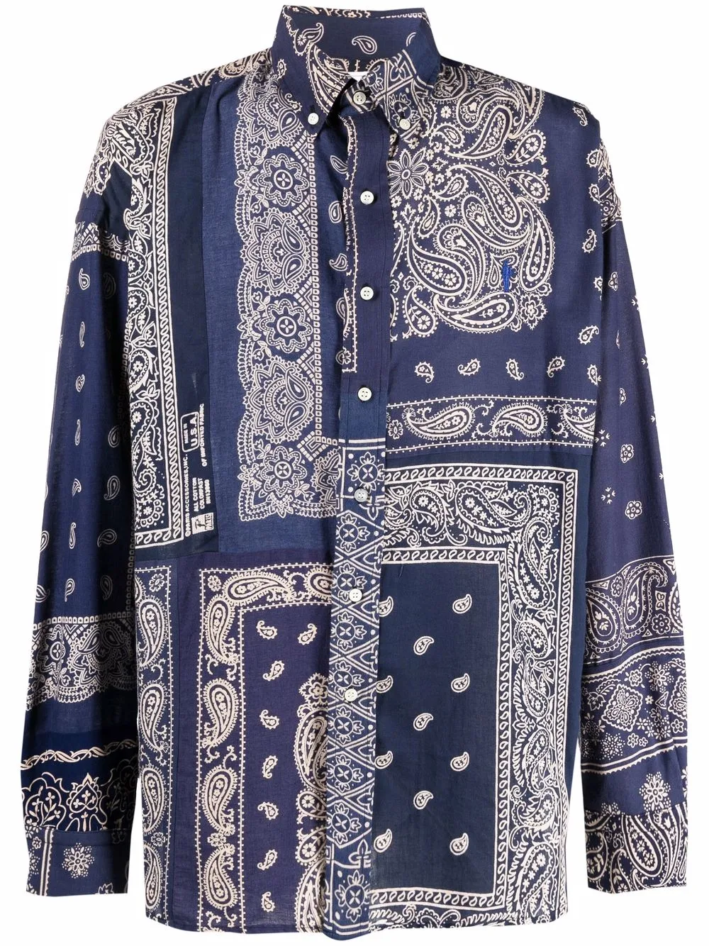 Bandana-Print, Button-down-Kragen, Knopfverschluss vorne, lange Ärmel, Knopfmanschetten, abgerundeter Saum. Material: Baumwolle.