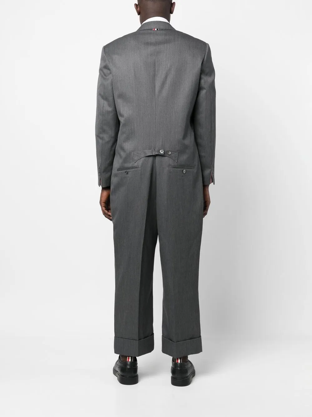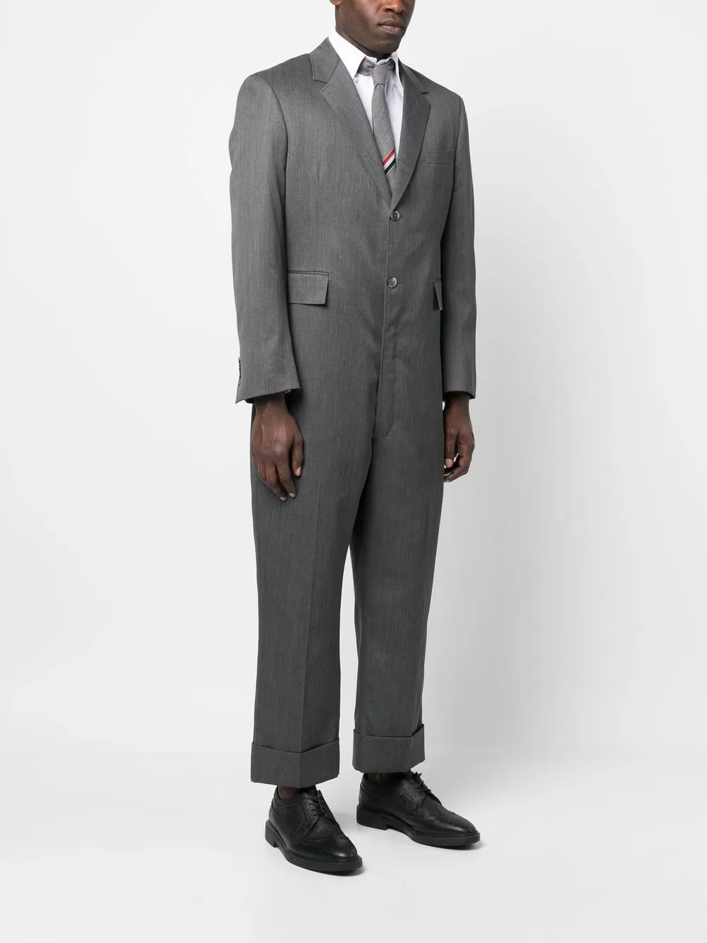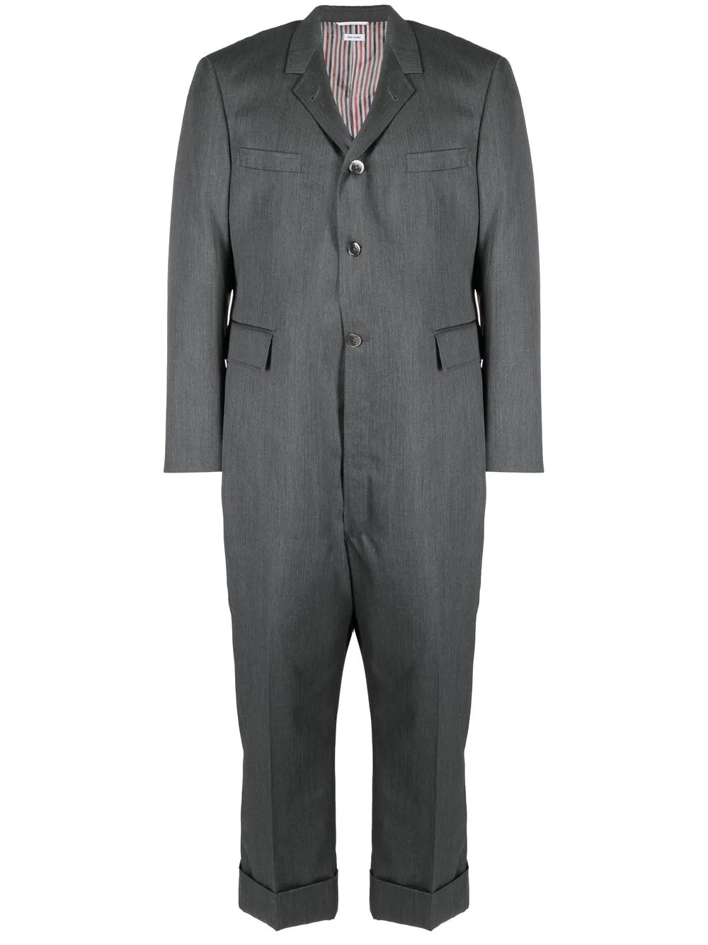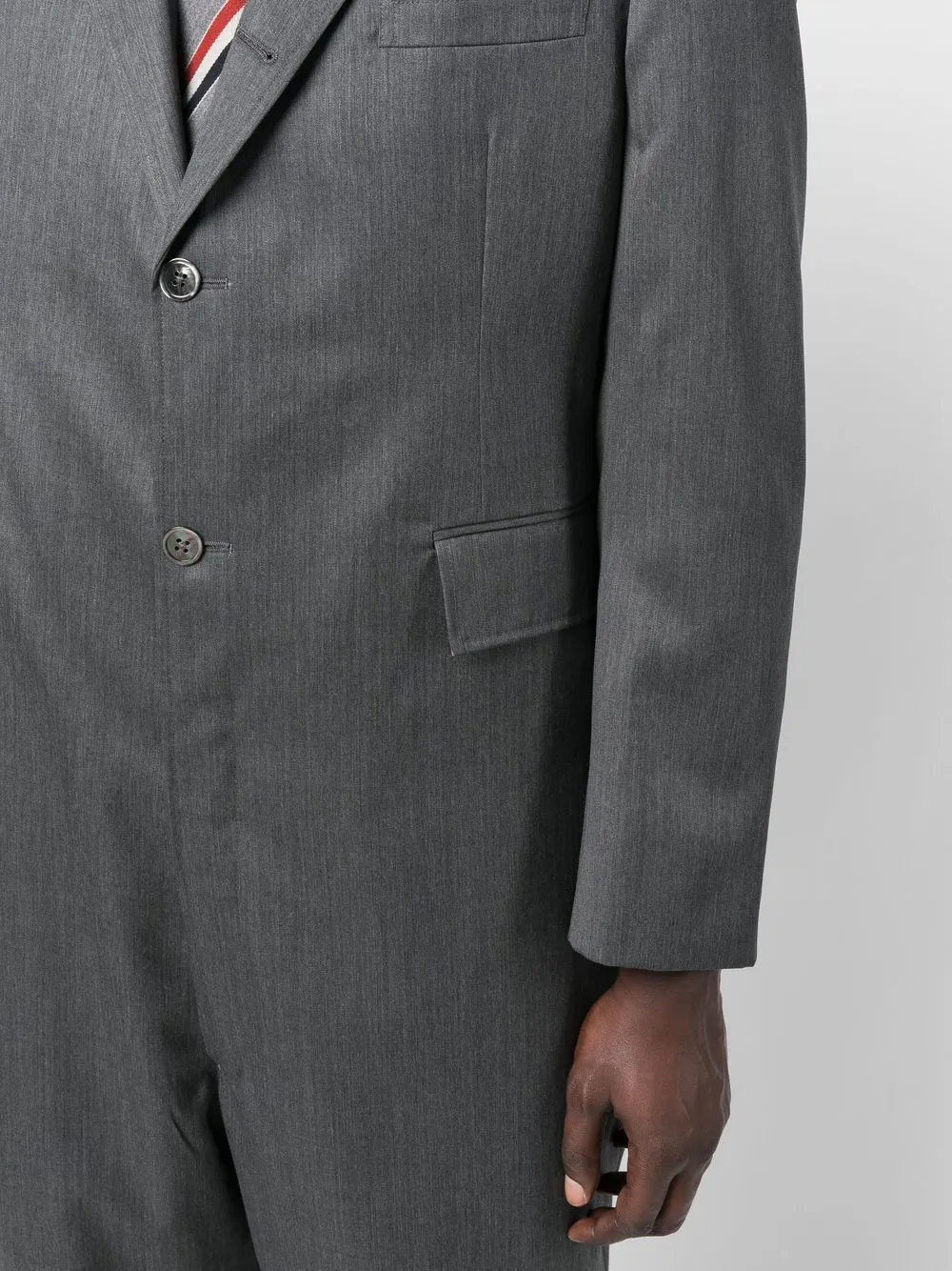 Hellgrau, Knopfverschluss vorne, zwei seitliche Pattentaschen, lange Ärmel, klassischer Schnitt.