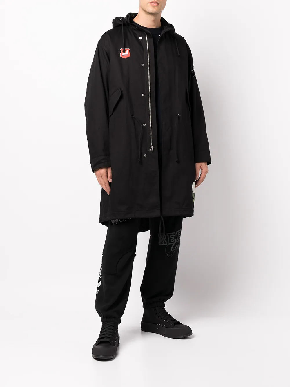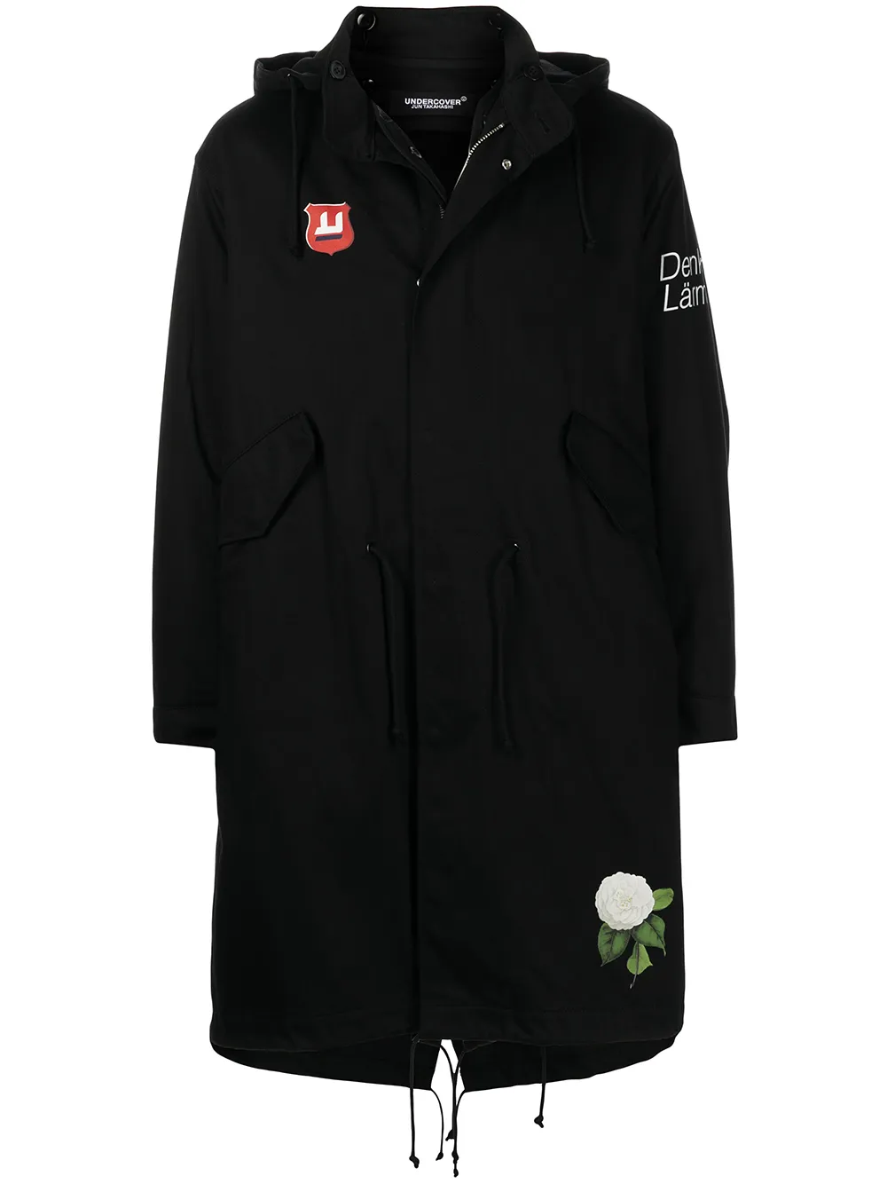Blumen-Print, Slogan-Print, Kapuze mit Kordelzug, verdeckter Verschluss vorne, zwei Knopftaschen an der Seite, lange Ärmel, Kordelzugbund, Saum mit Kordelzug. Farbe: Schwarz.