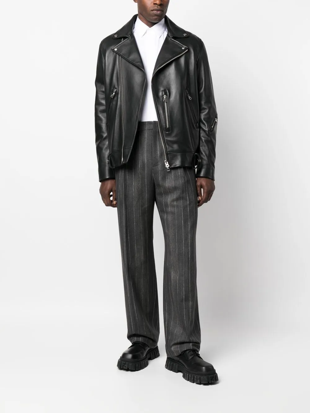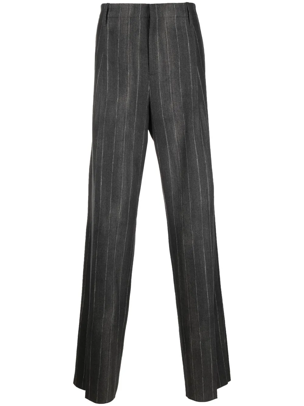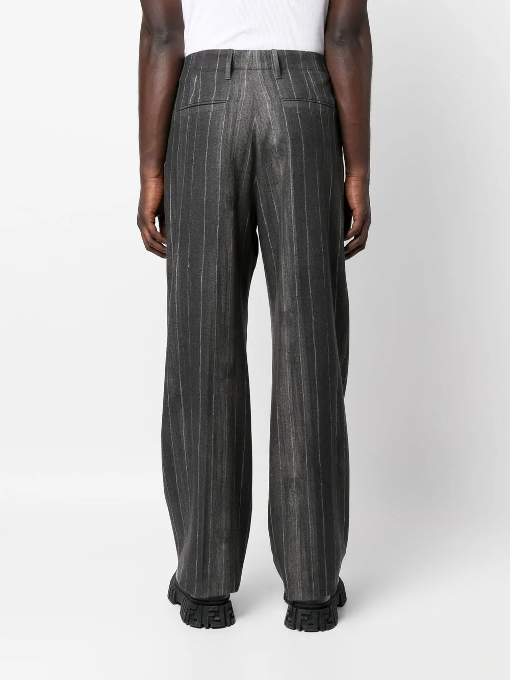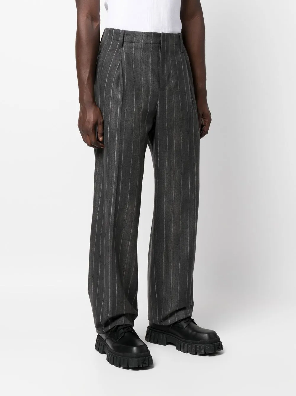 Längsstreifen, Faltendetails, Gürtelschlaufen, Haken- und Reißverschluss, zwei Eingrifftaschen an der Seite, zwei Eingriffstaschen hinten, klassischer Schnitt, gerades Bein.