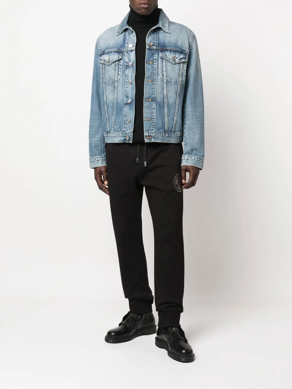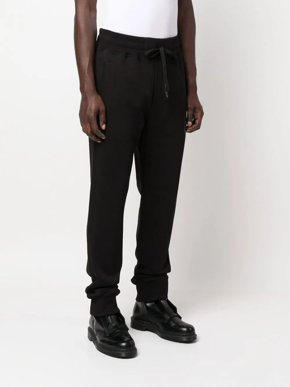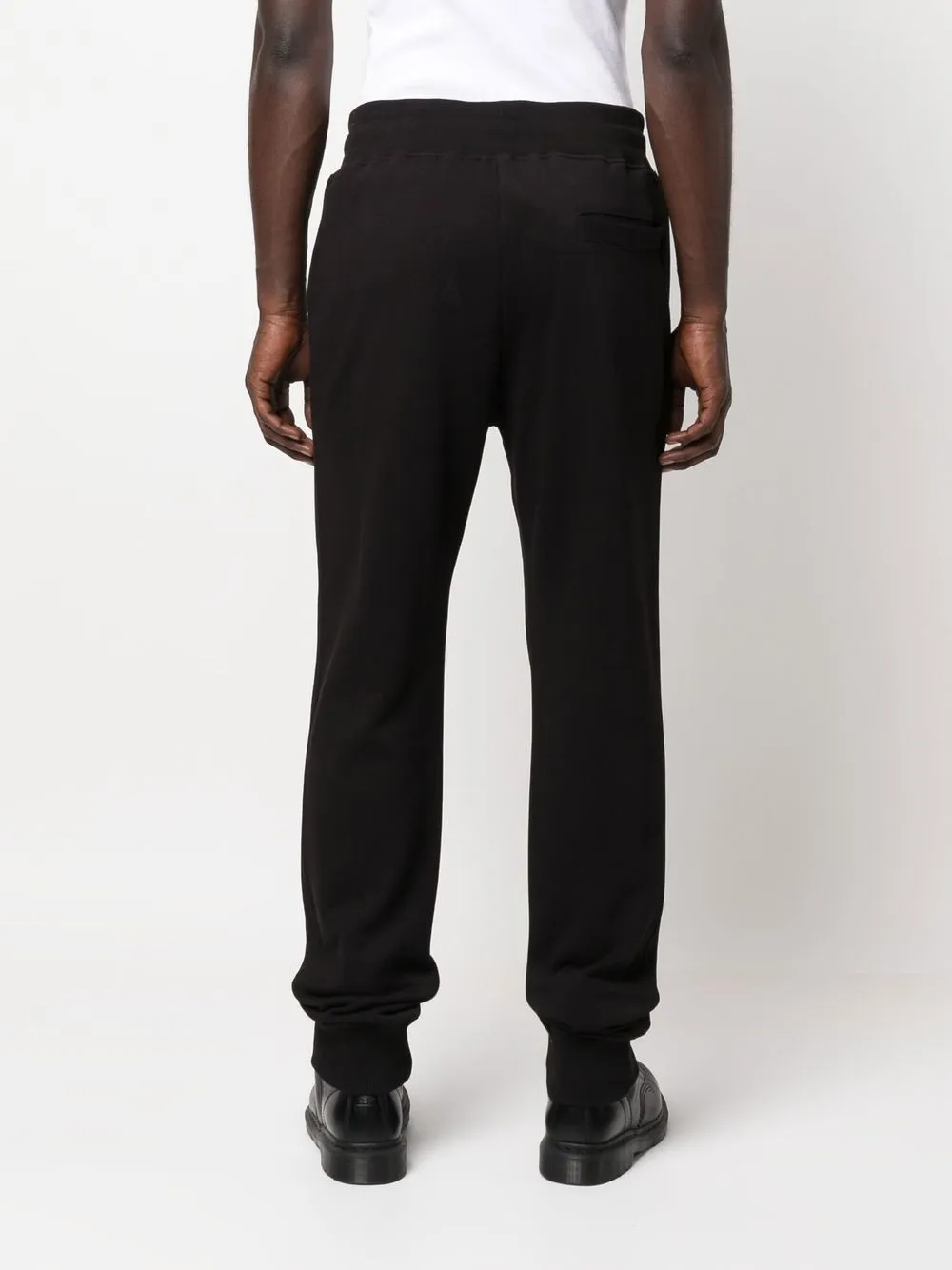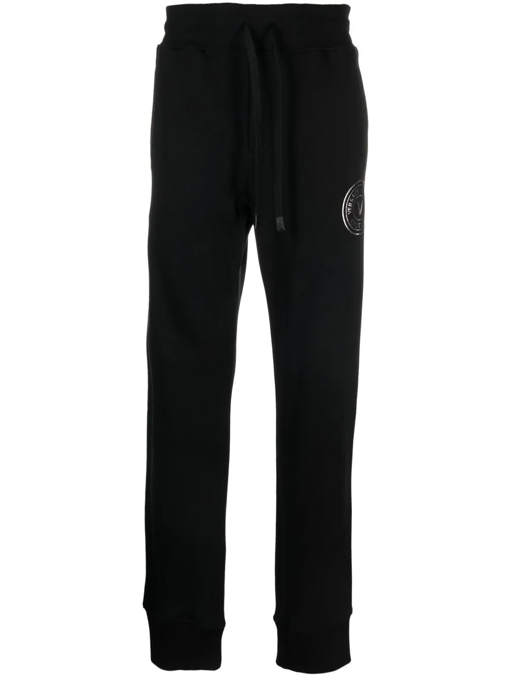 Schwarz, Baumwolle, seitlicher Logo-Print, Kordelzugbund, Tapered-Bein, eingefasste Gesäßtasche.