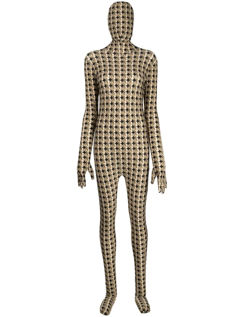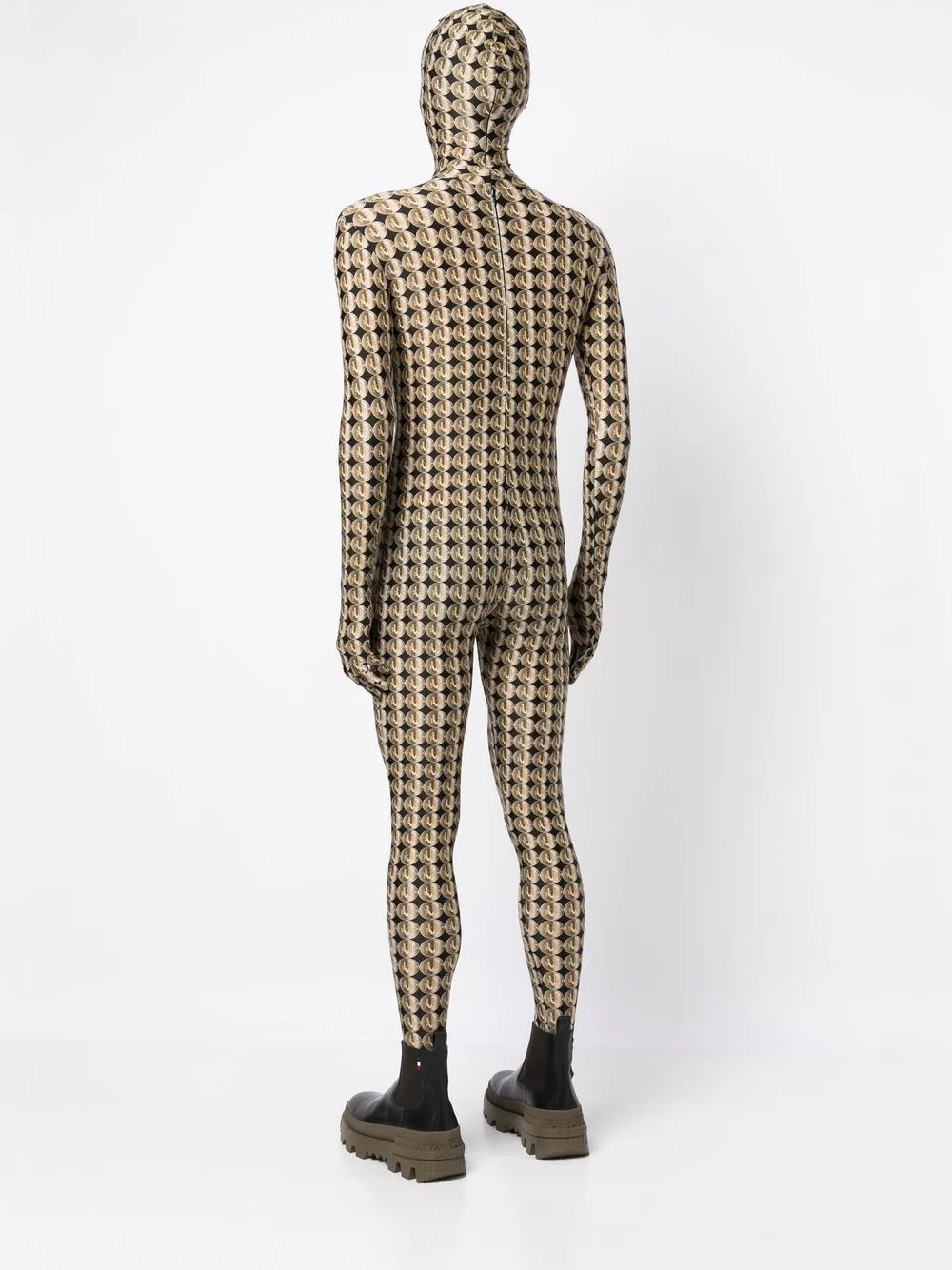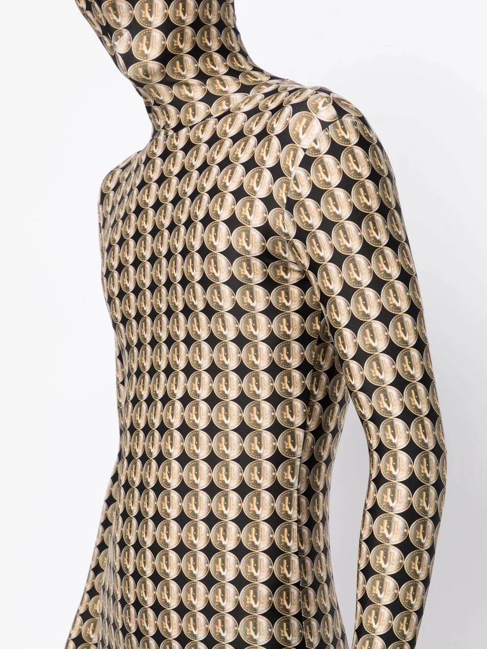 Schwarz, Stretch-Design, grafischer Print, lange Ärmel, Super-Skinny-Fit, verdeckter Reißverschluss hinten.